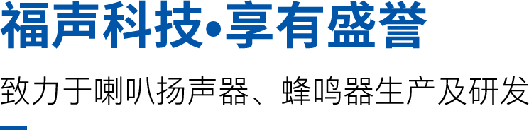 中心泰州福聲電子科技有限公司主要生產(chǎn)聲學(xué)器件,有著豐富的研發(fā)生產(chǎn)銷售經(jīng)驗, 我們主要生產(chǎn)喇叭、揚聲器、壓電式蜂鳴器、電磁式蜂鳴器、貼片式蜂鳴器等電聲元器件。